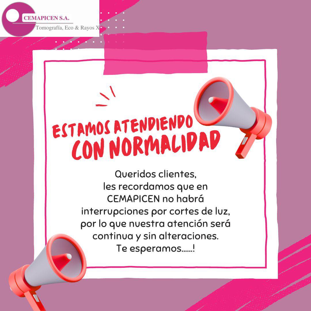 Nos complace informarles que no habrá interrupciones por cortes de luz, por lo que nuestra atención será en horario normal.